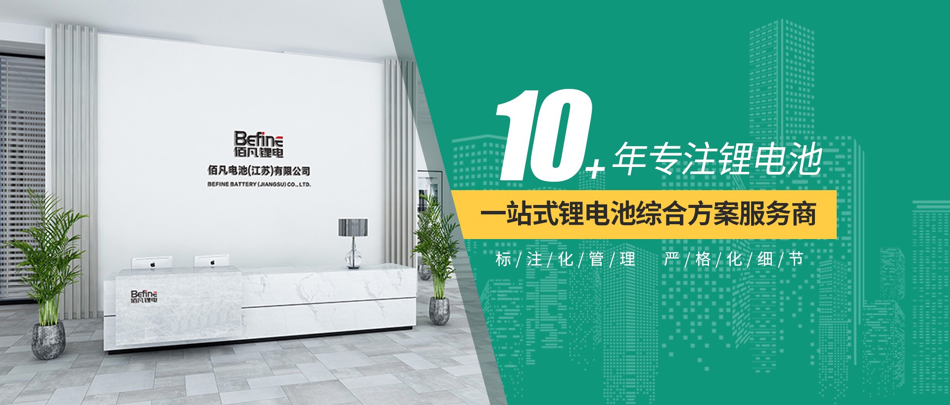 佰凡電池(江蘇)有限公司坐落于無錫國家新能源產業基地,為園區重點扶持的新能源企業。是一 家專業研發、生產和銷售鋰離子電池的新能源企業,公司擁有完善的研發,生產,銷售,售后體系。以 提供“優質、安全、環?!钡匿囯姵禺a品為使命。憑借著持續的自主研發創新和設計能力,良好的成本 控制體系和優質的產品服務,被許多知名的企業所認可并發展為戰略合作伴。 佰凡電池(江蘇)有限公司自成立以來,在研發、生產、品質、銷售等方面吸收國際上先進的管理經 驗,嚴格貫徹執行ISO9001體系標準,制造車間配備先進的生產設備和一流的檢測儀器,嚴格控制每一 步制作環節,通過工藝上不斷的優化和完善,確保為客戶提供一流品質產品。 佰凡電池(江蘇)有限公司先后通過CE,ISO9001等相關認證,并擁有多款UN38.3航空運輸報告,公司 自主開發有多款鋰電池外殼模具,產品專注于機器人,AGV,軍工,醫療,通信,精密儀器,鋰電池 UPS等高新領域!